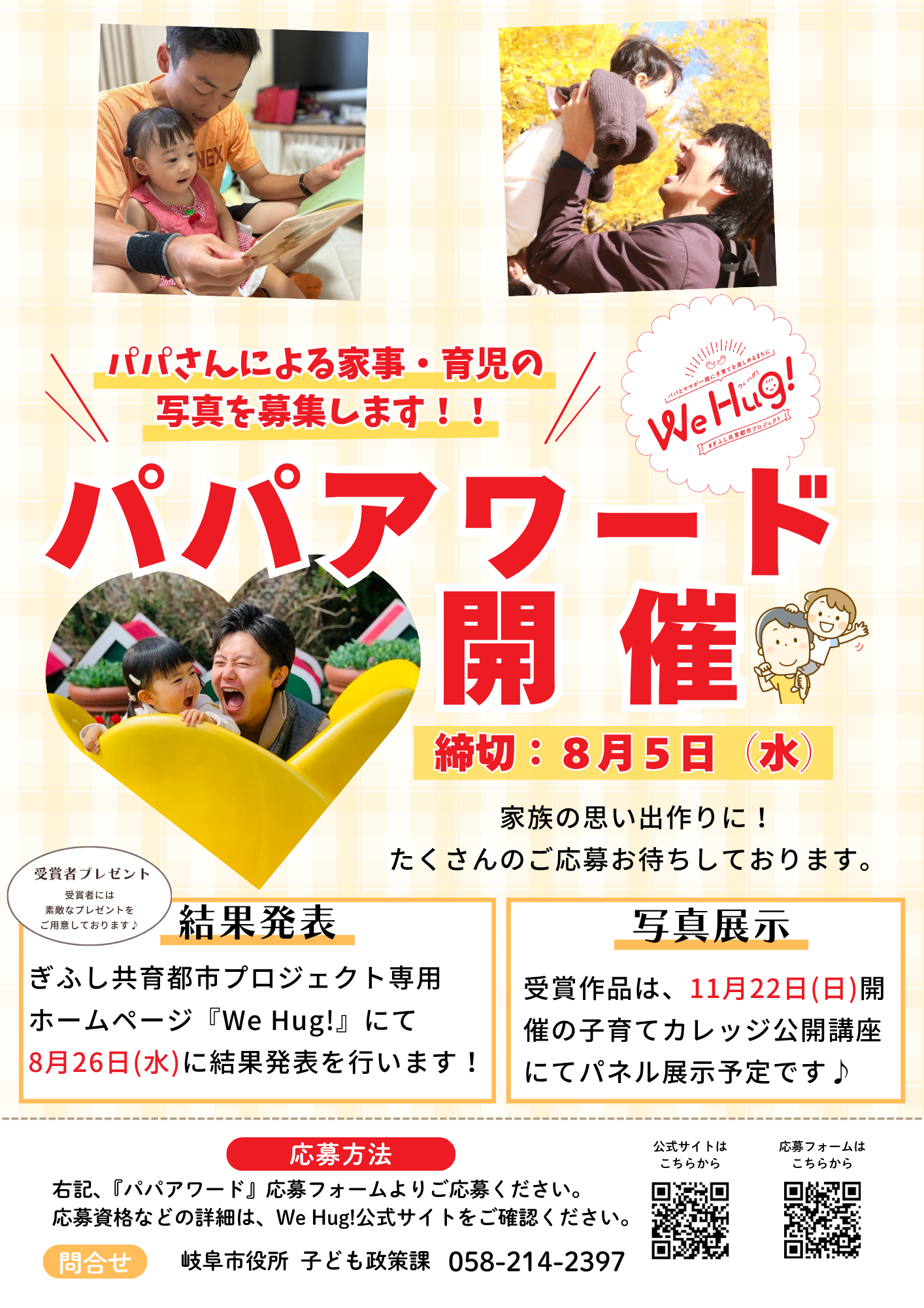 8月26日(水)にぎふし共育都市プロジェクト専用ホームページ「WeHug!」にて結果発表を行います。